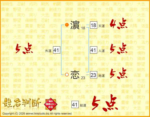 濵恋さんの総運は41画の5点!