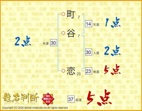 町谷恋さんの総運は37画の5点!