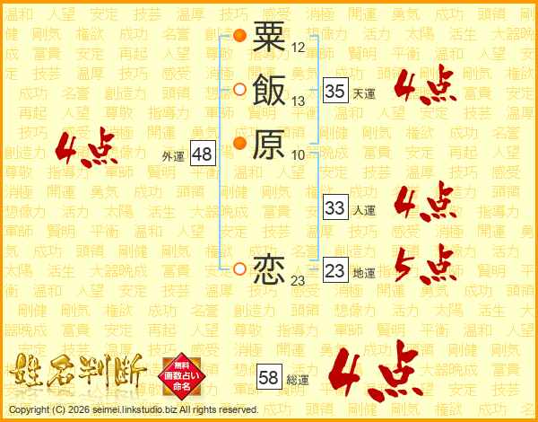粟(12画)飯(13画)原(10画) 恋(23画)