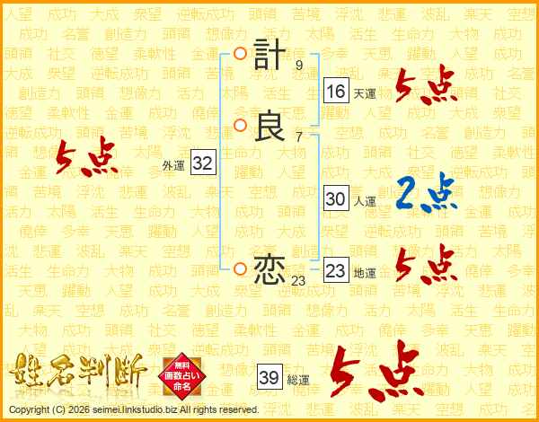 計(9画)良(7画) 恋(23画)