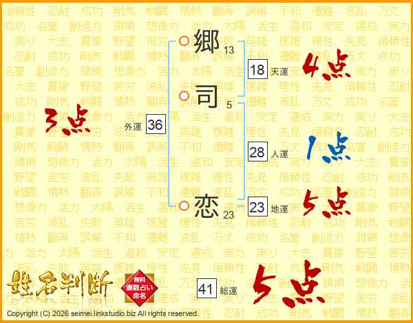 郷(13画)司(5画) 恋(23画)