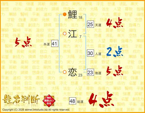 鯉江恋さんの天運は25画の4点!
