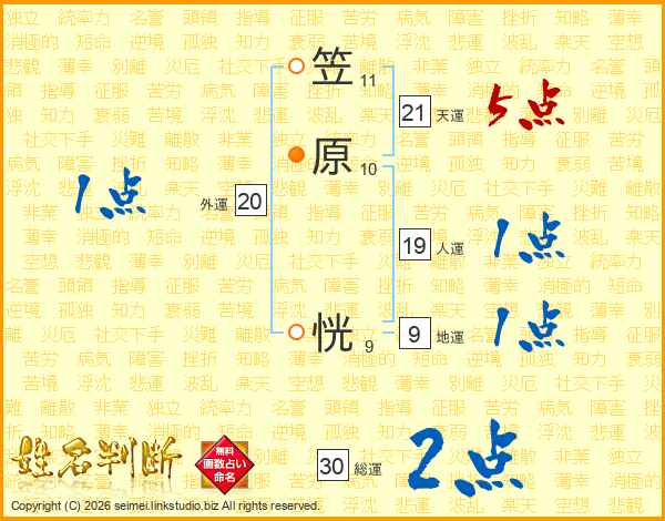 笠原恍さんの天運は21画の5点!
