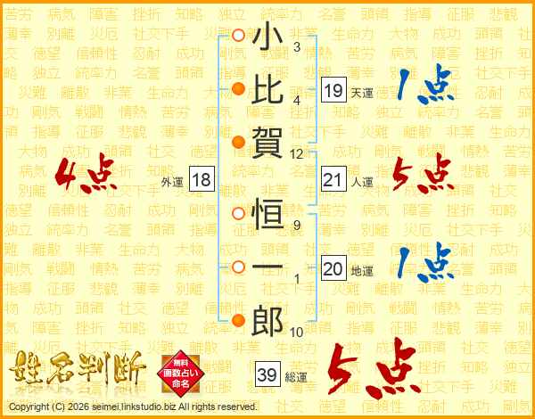 小比賀恒一郎さんの総運は39画の5点!