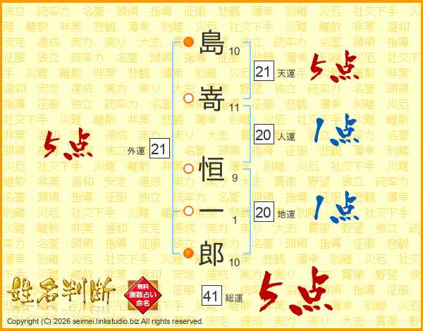 島嵜恒一郎さんの天運は21画の5点!