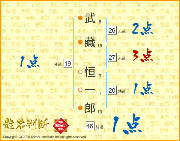 武(8画)藏(18画) 恒(9画)一(1画)郎(10画)