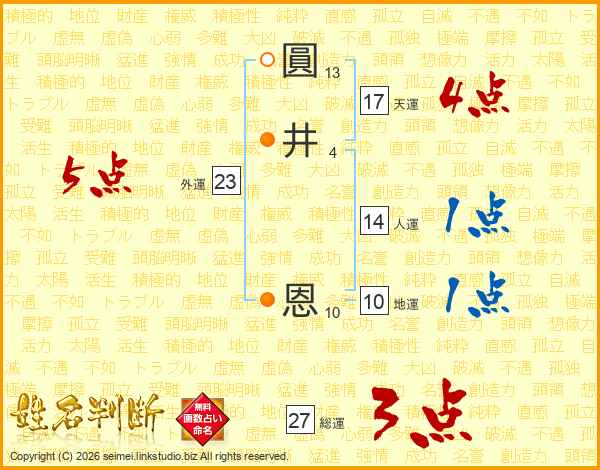 圓井恩さんの総運は27画の3点!