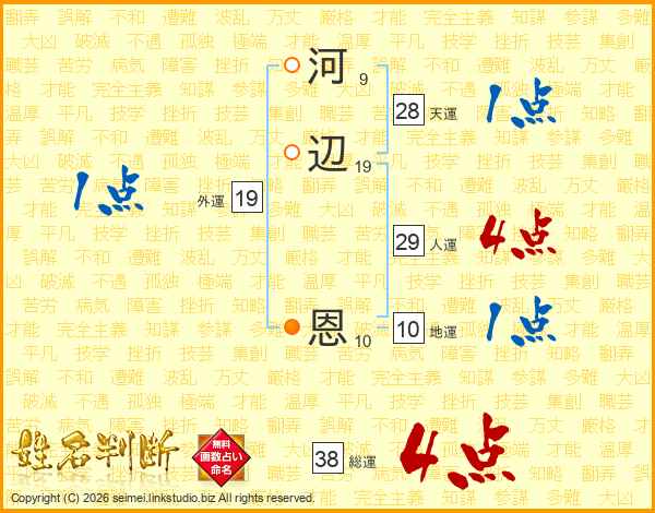 河辺恩さんの総運は38画の4点!