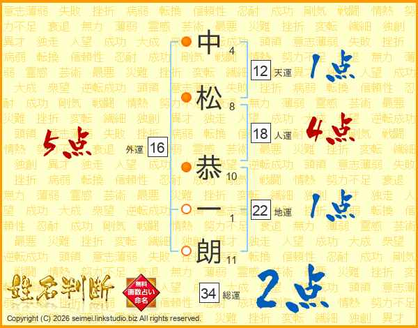 中松恭一朗さんの総運は34画の2点!
