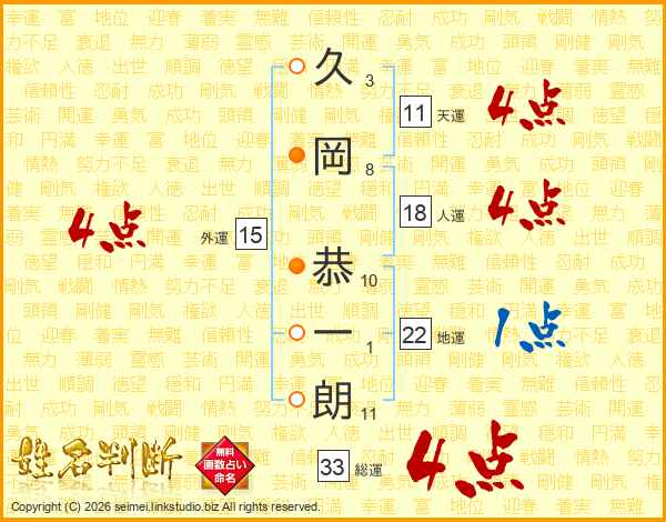 久岡恭一朗さんの総運は33画の4点!