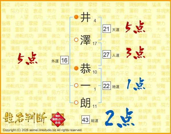 井澤恭一朗さんの天運は21画の5点!