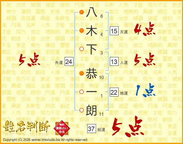 八木下恭一朗さんの総運は37画の5点!