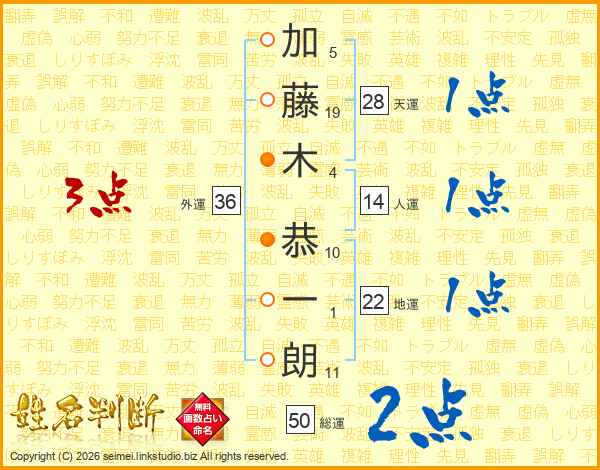 加藤木恭一朗さんの人運は14画の1点!