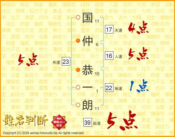 国仲恭一朗さんの総運は39画の5点!