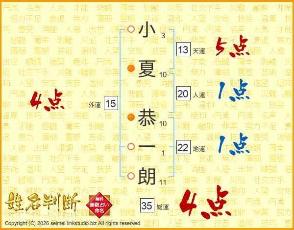 小夏恭一朗さんの総運は35画の4点!