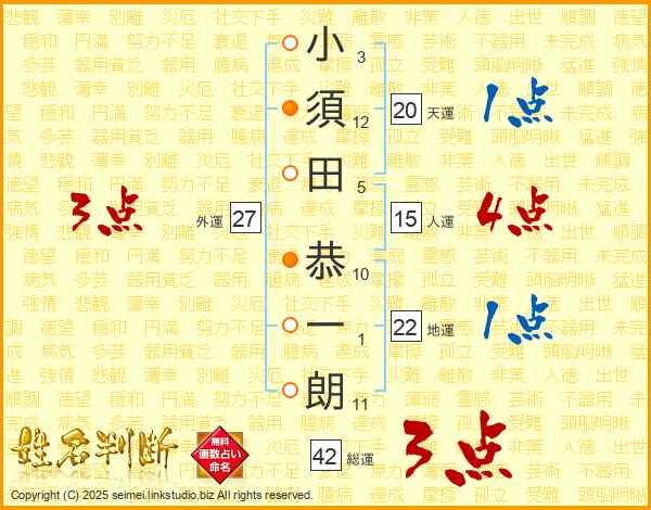 小須田恭一朗さんの人運は15画の4点!
