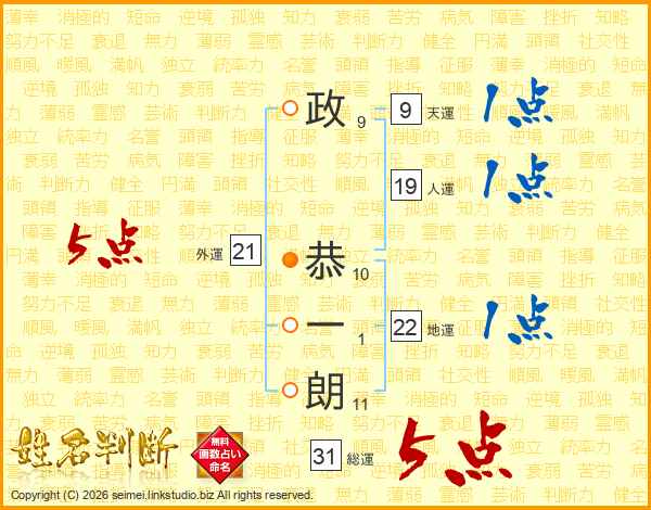 政恭一朗さんの総運は31画の5点!