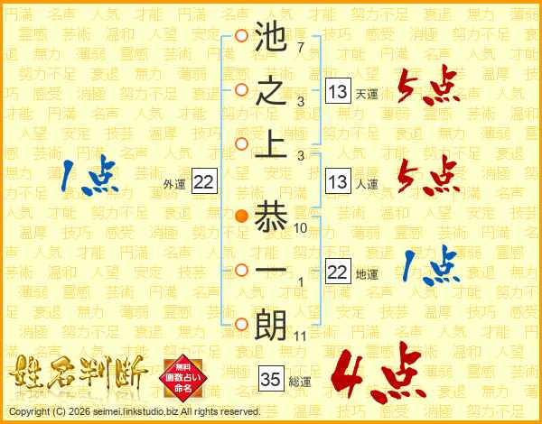 池之上恭一朗さんの総運は35画の4点!