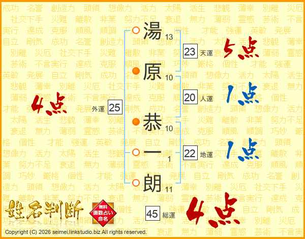 湯原恭一朗さんの総運は45画の4点!