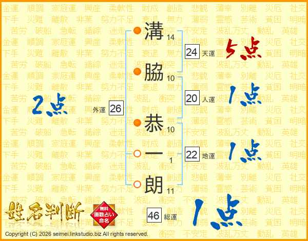 溝(14画)脇(10画) 恭(10画)一(1画)朗(11画)