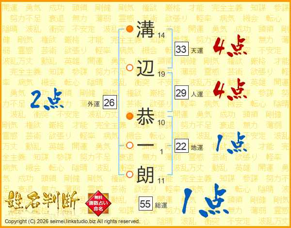 溝辺恭一朗さんの天運は33画の4点!