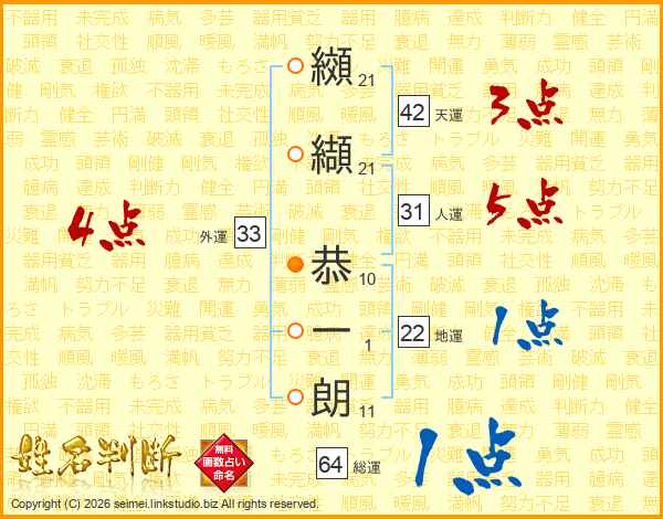 纐纈恭一朗さんの人運は31画の5点!