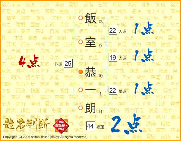 飯室恭一朗さんの総運は44画の2点!