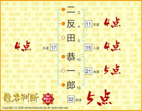 二反田恭一郎さんの外運は17画の4点!