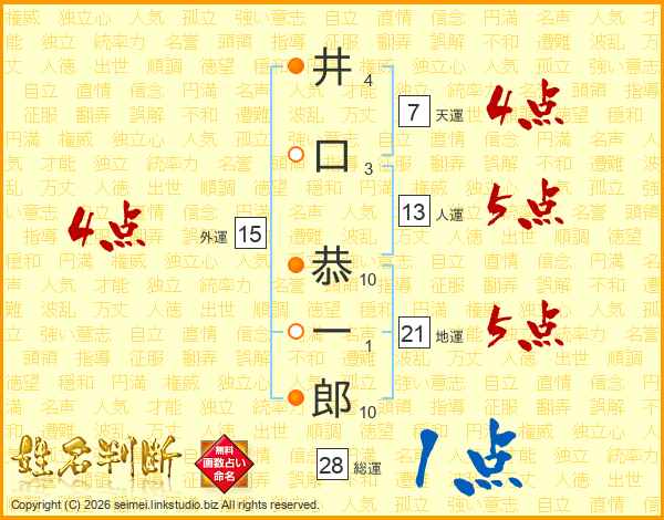 井口恭一郎さんの総運は28画の1点!