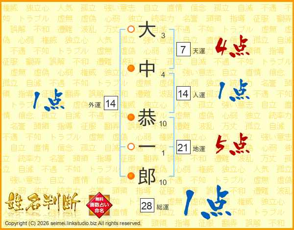 大中恭一郎さんの天運は7画の4点!
