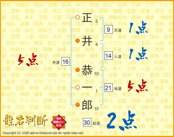 正井恭一郎さんの外運は16画の5点!