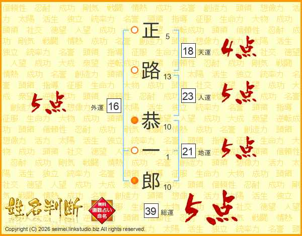 正(5画)路(13画) 恭(10画)一(1画)郎(10画)