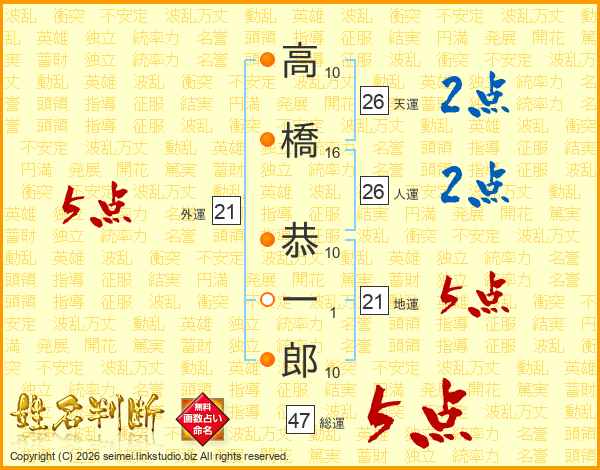 高橋恭一郎さんの総運は47画の5点!