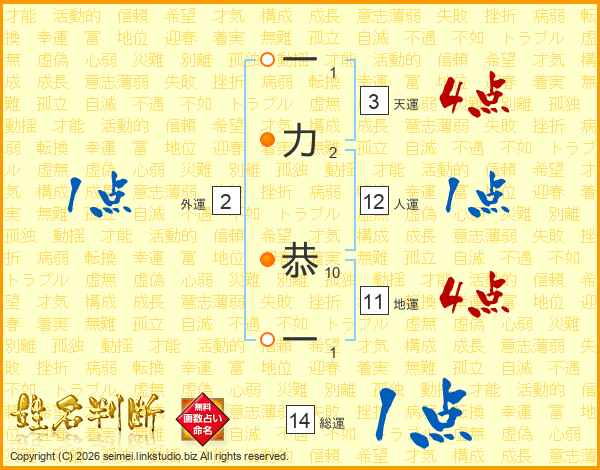 一力恭一さんの総運は14画の1点!