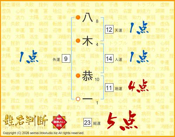 八木恭一さんの総運は23画の5点!