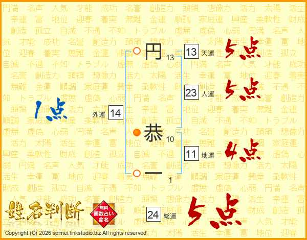 円恭一さんの人運は23画の5点!