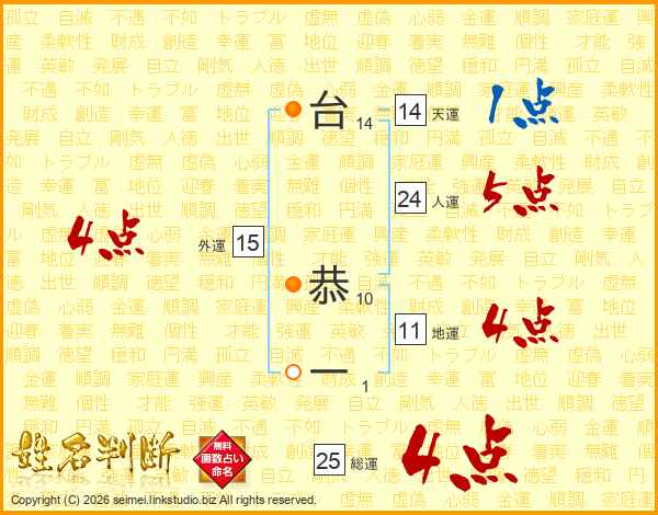 台恭一さんの総運は25画の4点!