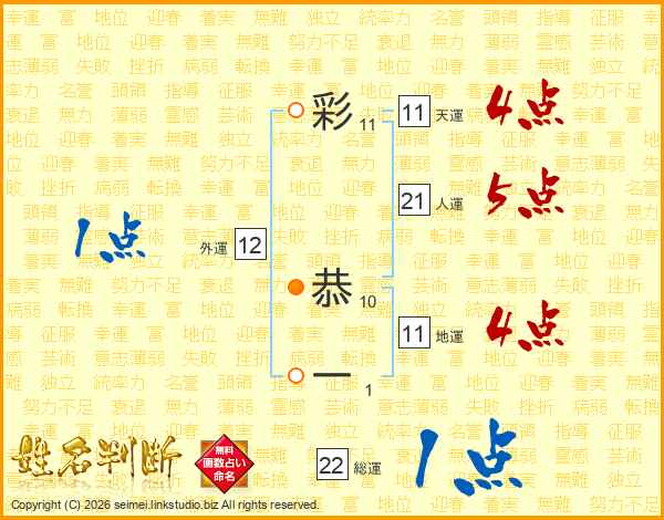 彩恭一さんの総運は22画の1点!