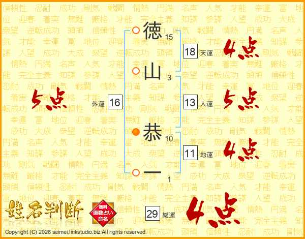 徳山恭一さんの総運は29画の4点!
