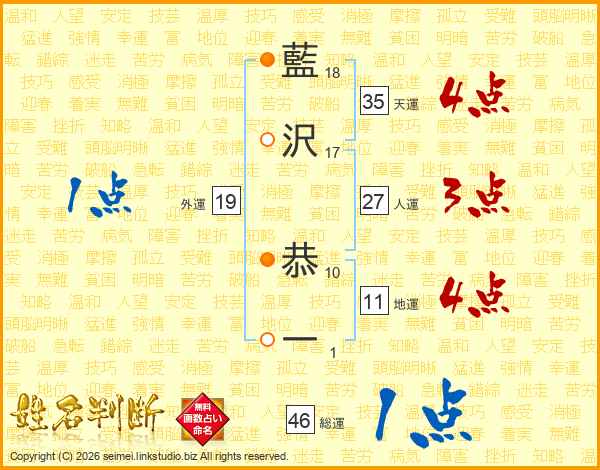 藍沢恭一さんの総運は46画の1点!