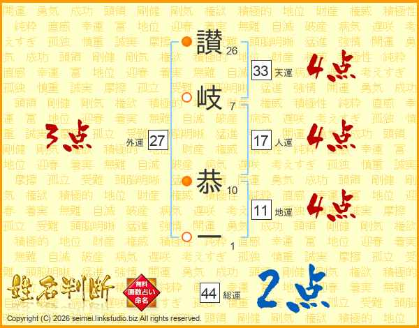 讃岐恭一さんの総運は44画の2点!