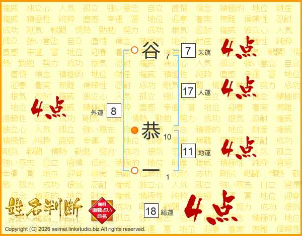谷恭一さんの総運は18画の4点!