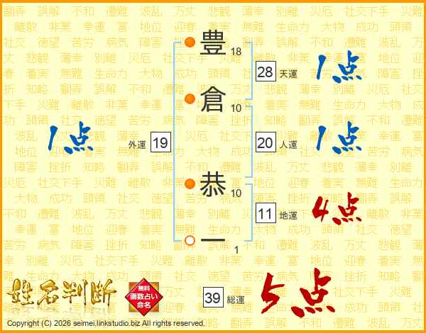豊(18画)倉(10画) 恭(10画)一(1画)