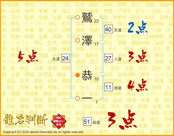 鷲澤恭一さんの総運は51画の3点!