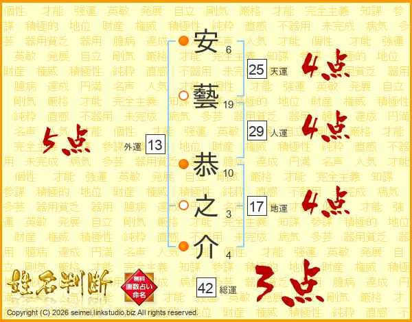安藝恭之介さんの天運は25画の4点!