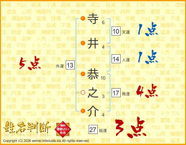 寺(6画)井(4画) 恭(10画)之(3画)介(4画)