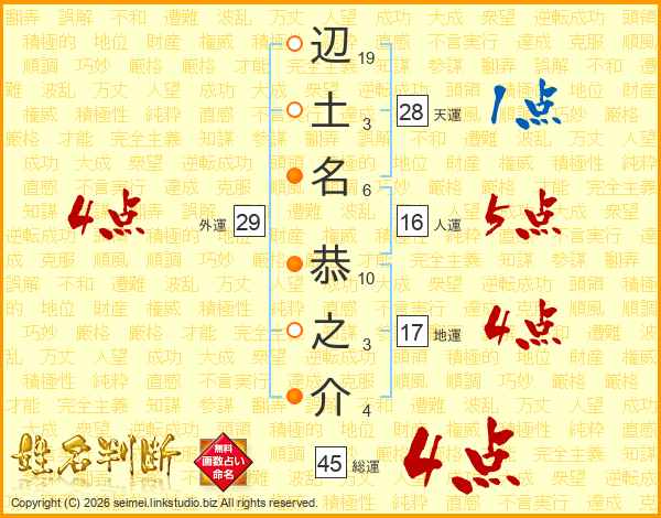 辺土名恭之介さんの総運は45画の4点!