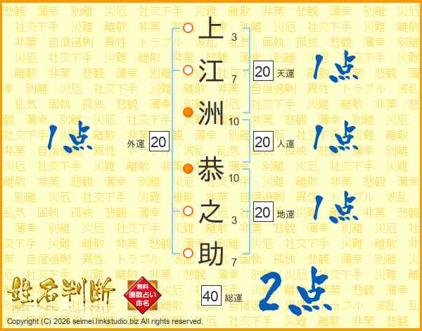上(3画)江(7画)洲(10画) 恭(10画)之(3画)助(7画)