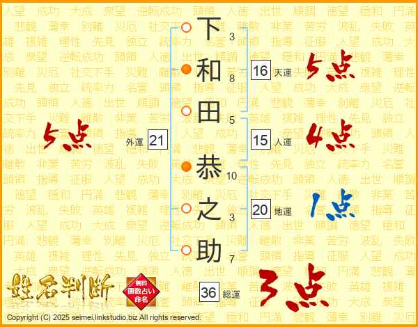 下和田恭之助さんの天運は16画の5点!