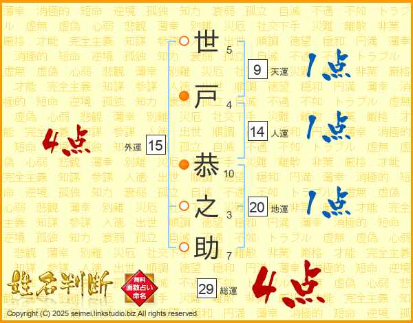 世(5画)戸(4画) 恭(10画)之(3画)助(7画)